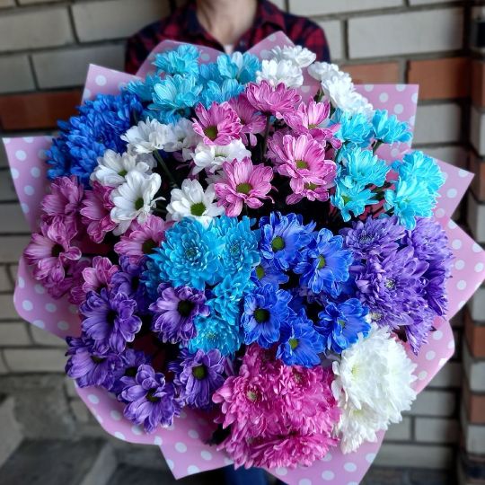 Словно в поле собраны ромашки, альстромерии,завернуты в упаковку!