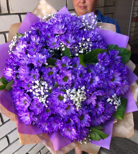 Шикарный букет из 35 хризантем! Если и давать носить девушкам тяжести, то только такие!