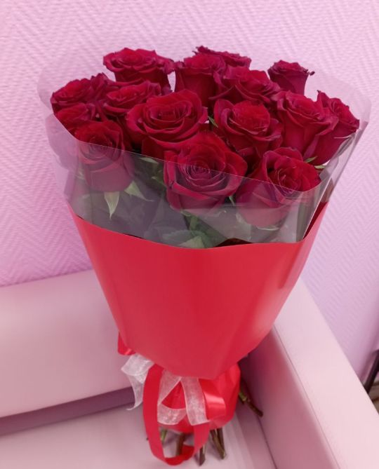 15 высоких алых роз